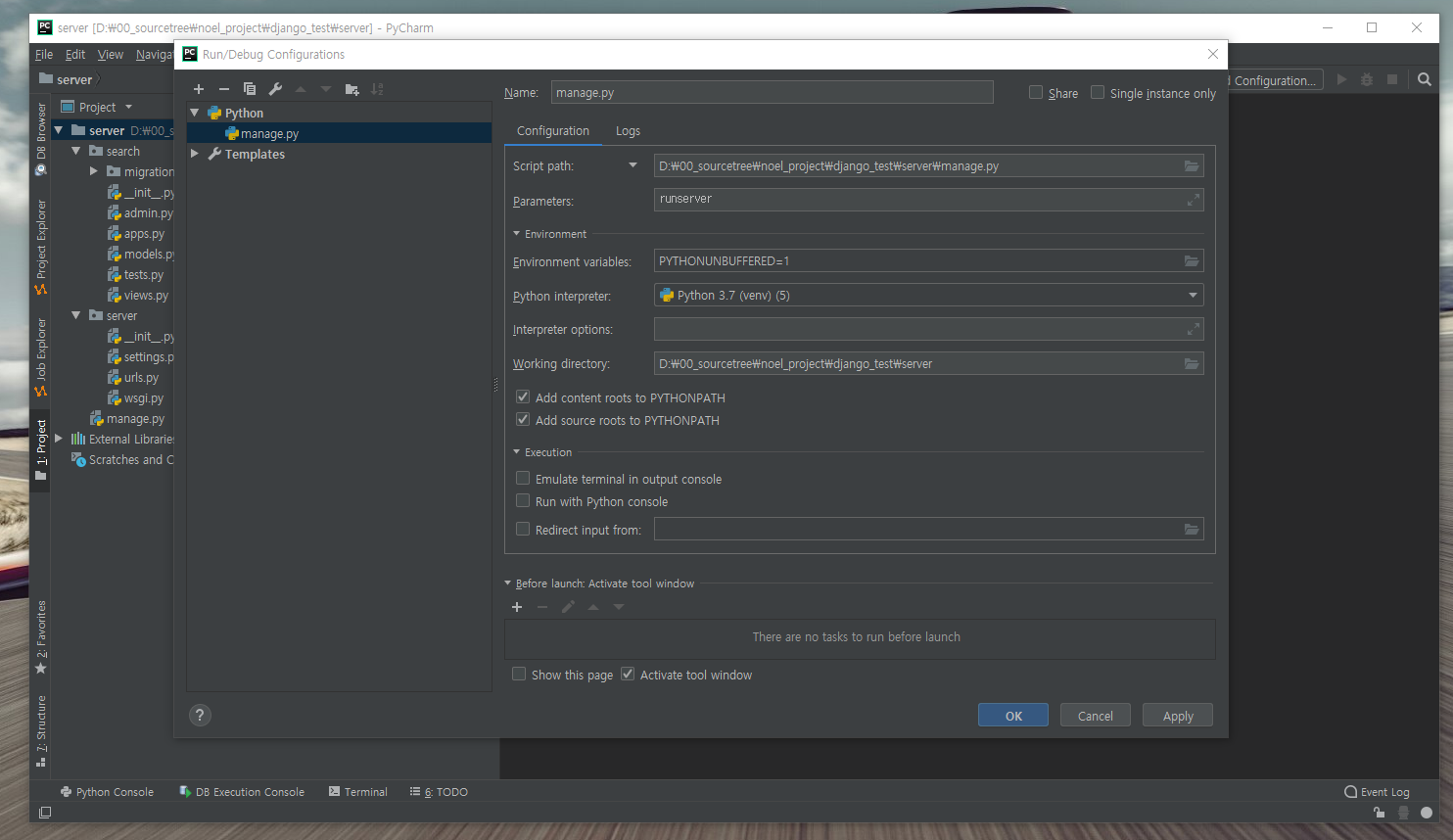 script path 에 프로젝트 내부의 manage.py 잡아줌