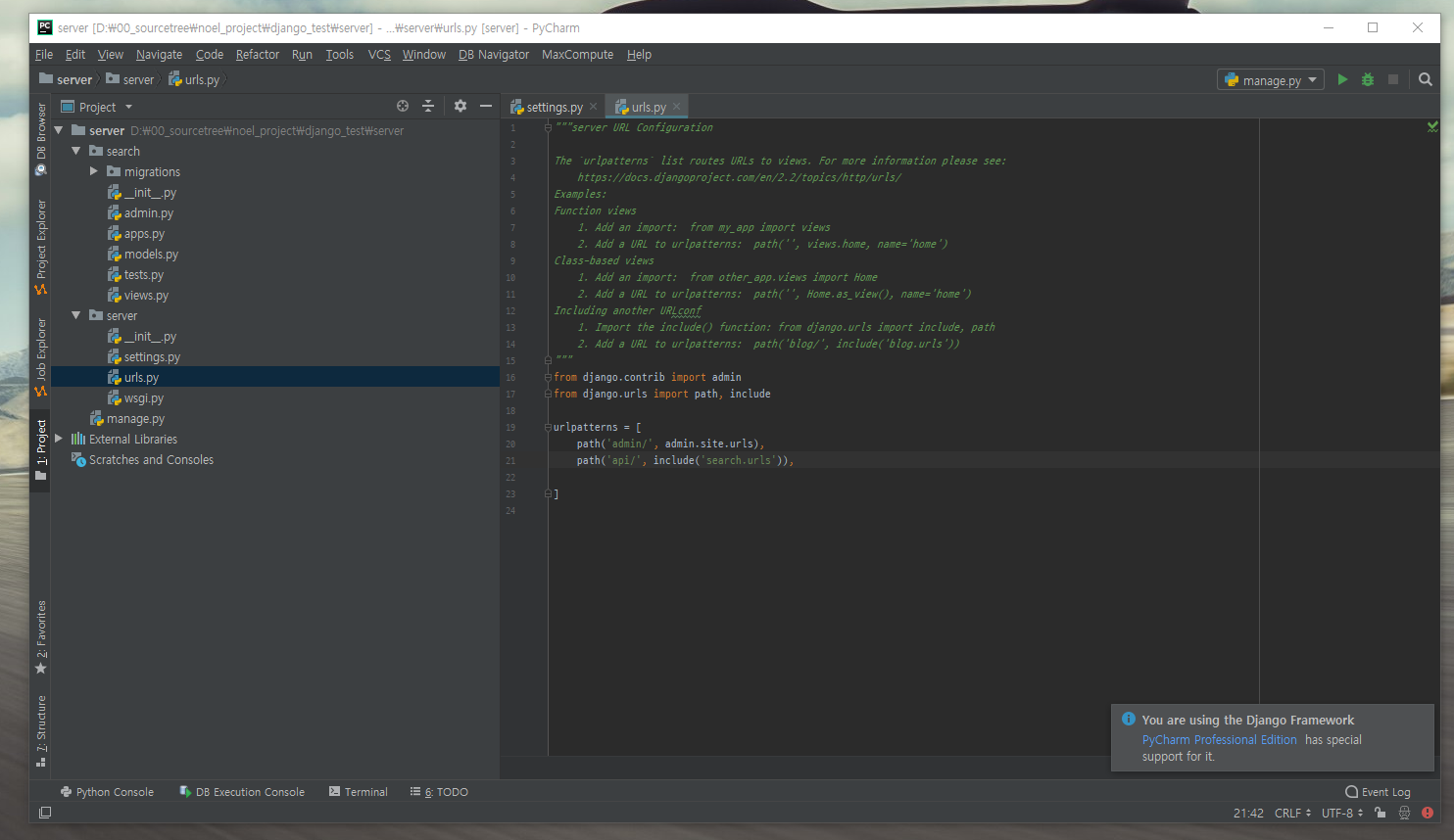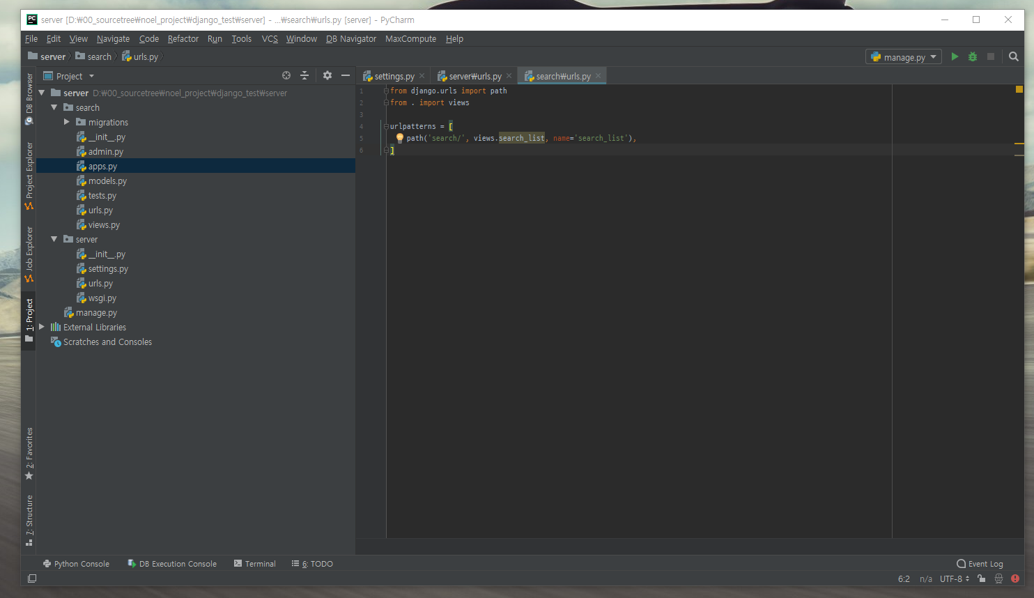 2. 프로젝트 내부의 urls.py를 오픈해준다.