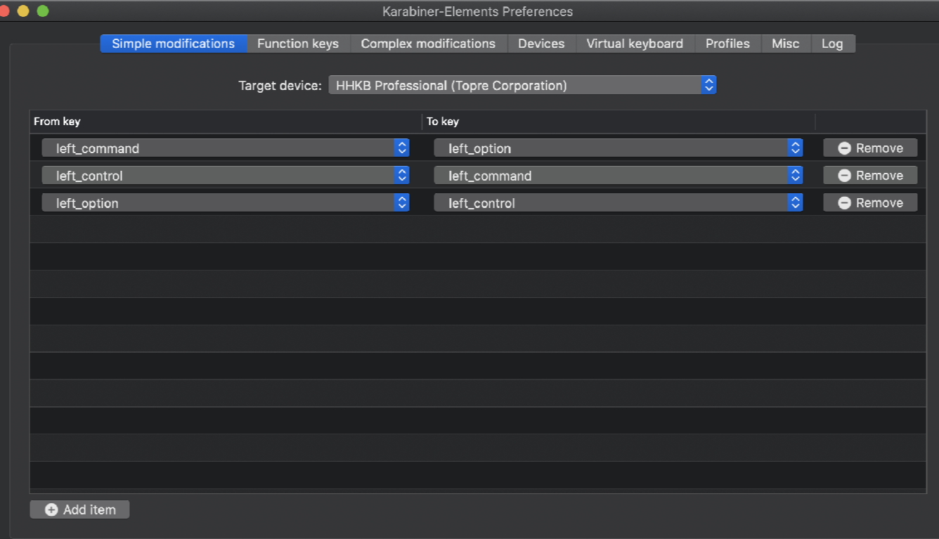윈도우즈에서 hhkb를 사용할때는 CapsLock기능을 거의 사용하지 않기 때문에 해당 키만 control(맥북의 command)로 대치하여 사용했었습니다. 윈도우즈의 경우에는 특정 프로그램을 설치하지 않아도 손쉽게 키 대치가 가능했기 때문에 간편했던 기억이 있네요.