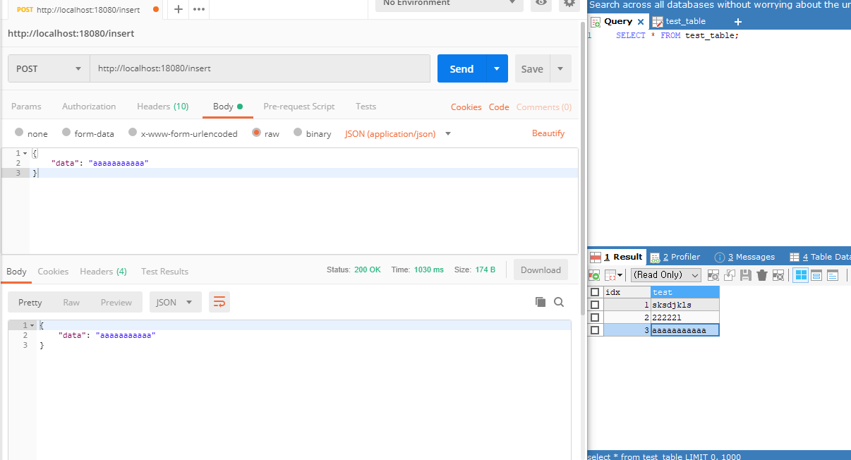 여기까지 작성했으면 postman으로 간단하게 테스트를 해본다