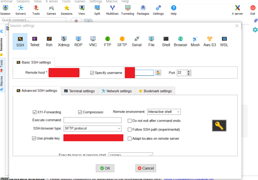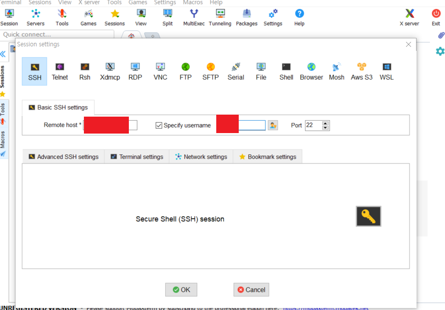 세션 추가 화면에서 Remote Host에 IP, userName 을 입력해줍니다.