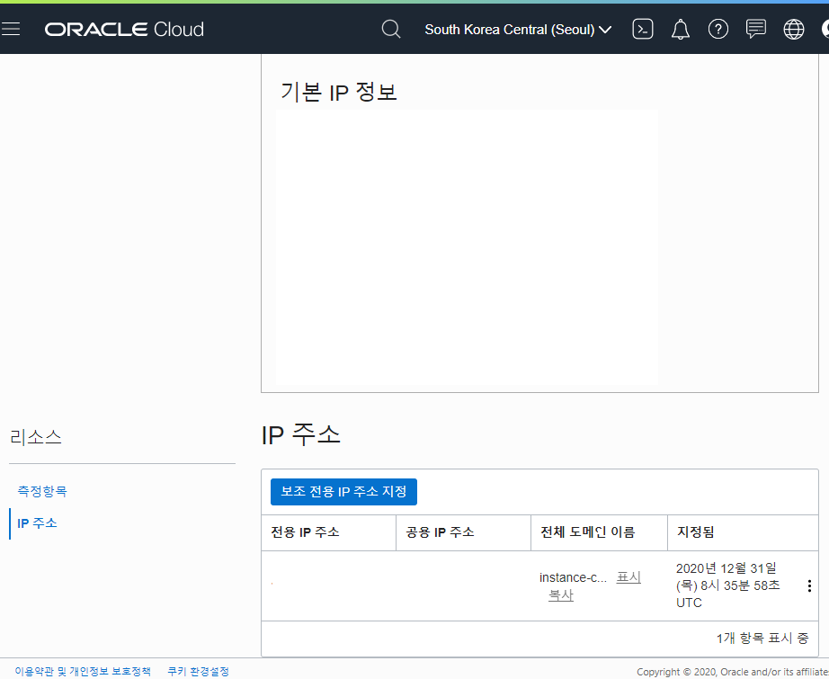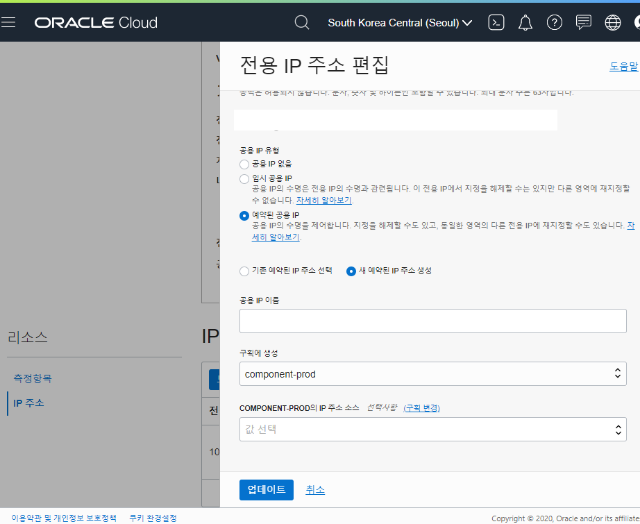 공용 IP 이름에 이름을 입력해주고 업데이트 클릭