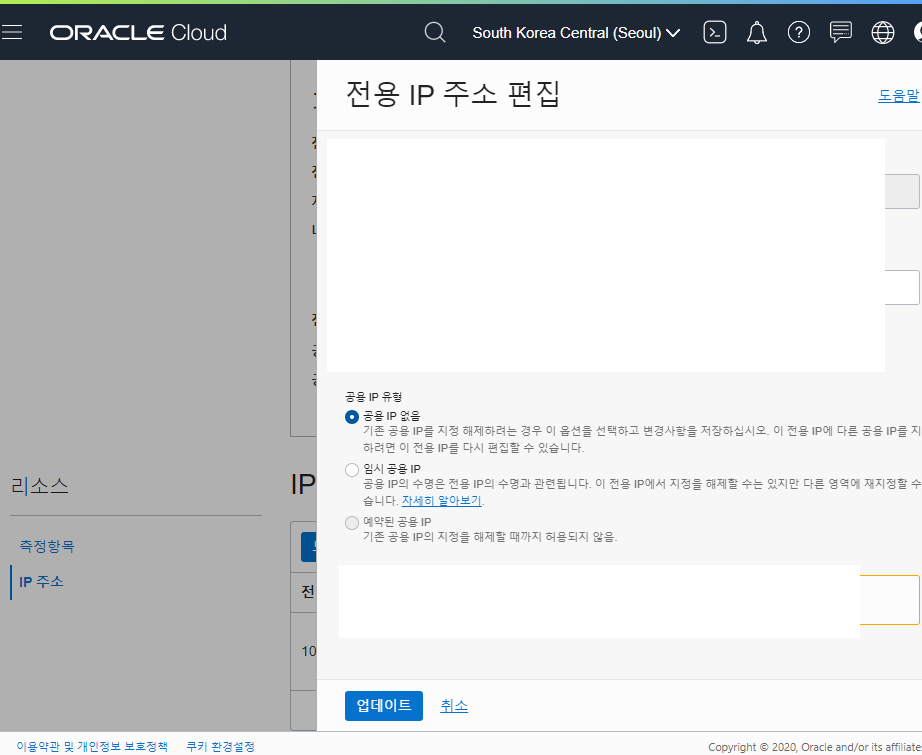 공용 IP 이름에 이름을 입력해주고 업데이트 클릭